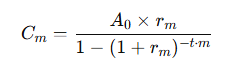 Annuitization (turning the account value into regular payouts) typically involves actuarial mathematics. One common formula (for a fixed, immediate annuity) is: